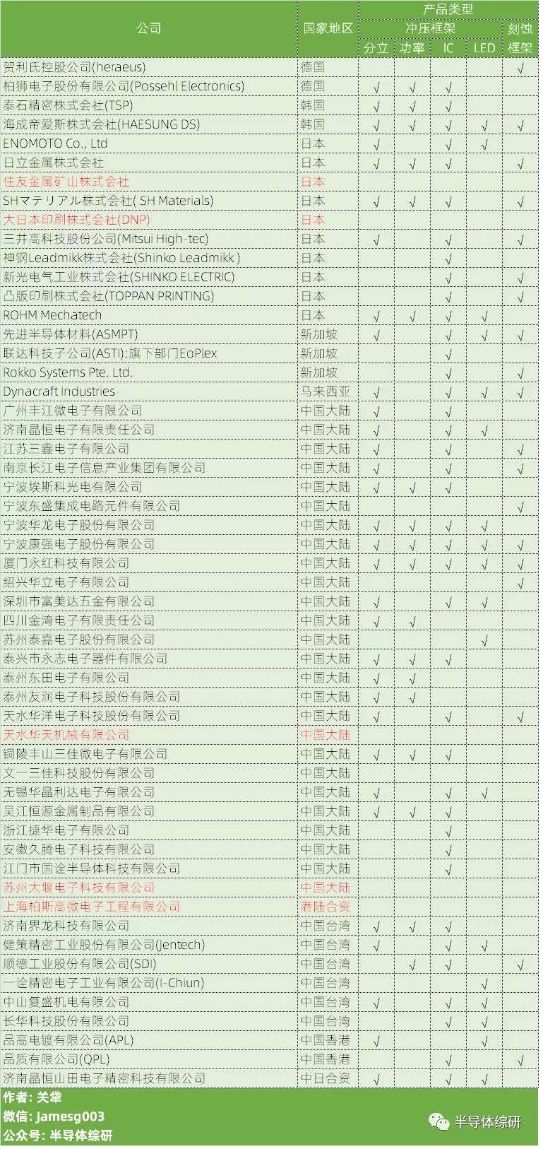 国际芯片封装引线框架厂商
